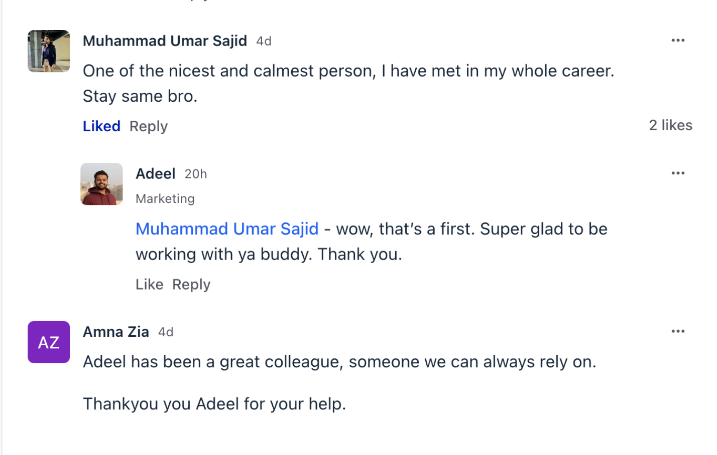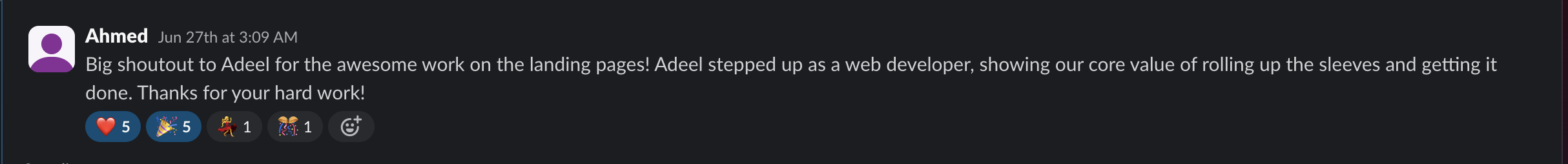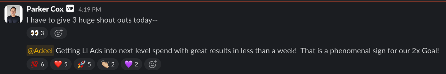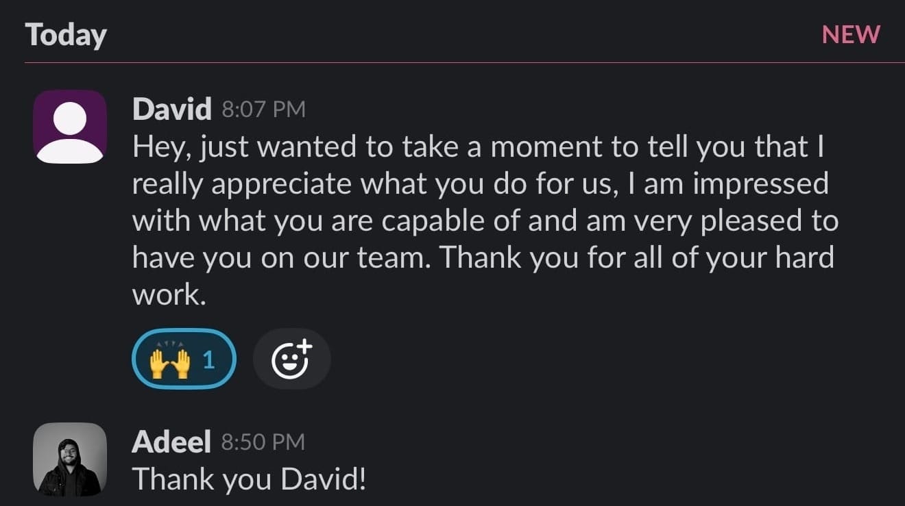 Slack shoutouts. LinkedIn comments. Messages from teammates, managers, founders.