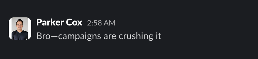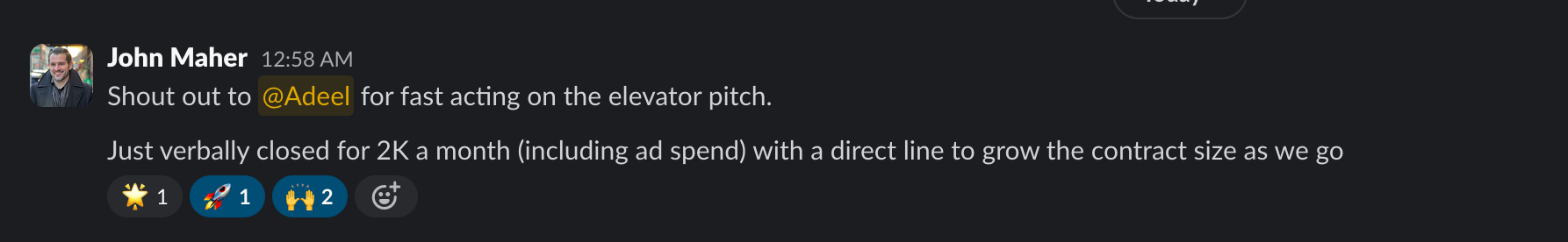 “First close came from Adeel’s email flow.”